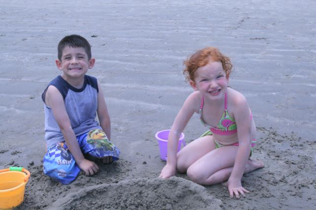 2009-07-17 Galveston -- Josh and Syd making a castle