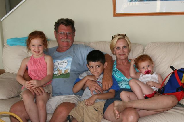 2009-07-17 Galveston -- Grandparent/Grandkid pic - love this one b/c Dad is actualy SMILING