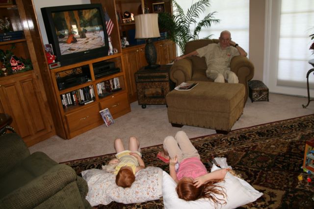 2009-08-01 Kids -- the girls watching a movie with GaGa at GranGran and Poppa's house