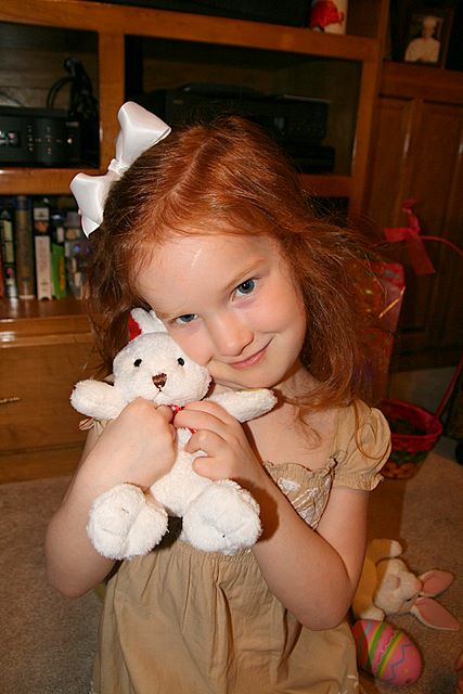 2009-04 Easter -- showing off her bunny