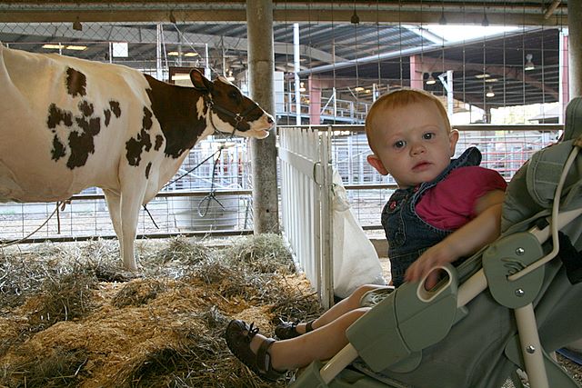 2008-09-01 Kids -- Averi meeting a cow at the fair