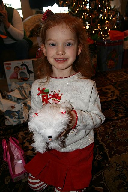 2008-12-22 Xmas -- Sydni loves her new little dog (And so does Averi!!)